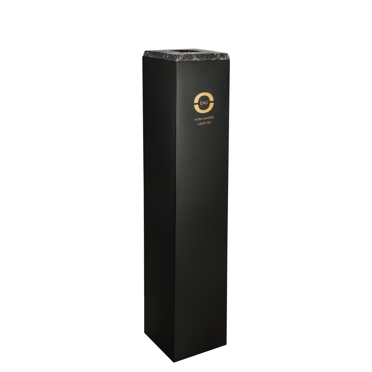 Elegante base opzionale in resina con effetto “marmo nero” disegnata per completare il Luxury Dispenser di “O” Hydra-sanitiser Gel. Base 20×20 cm; Altezza 102 cm.